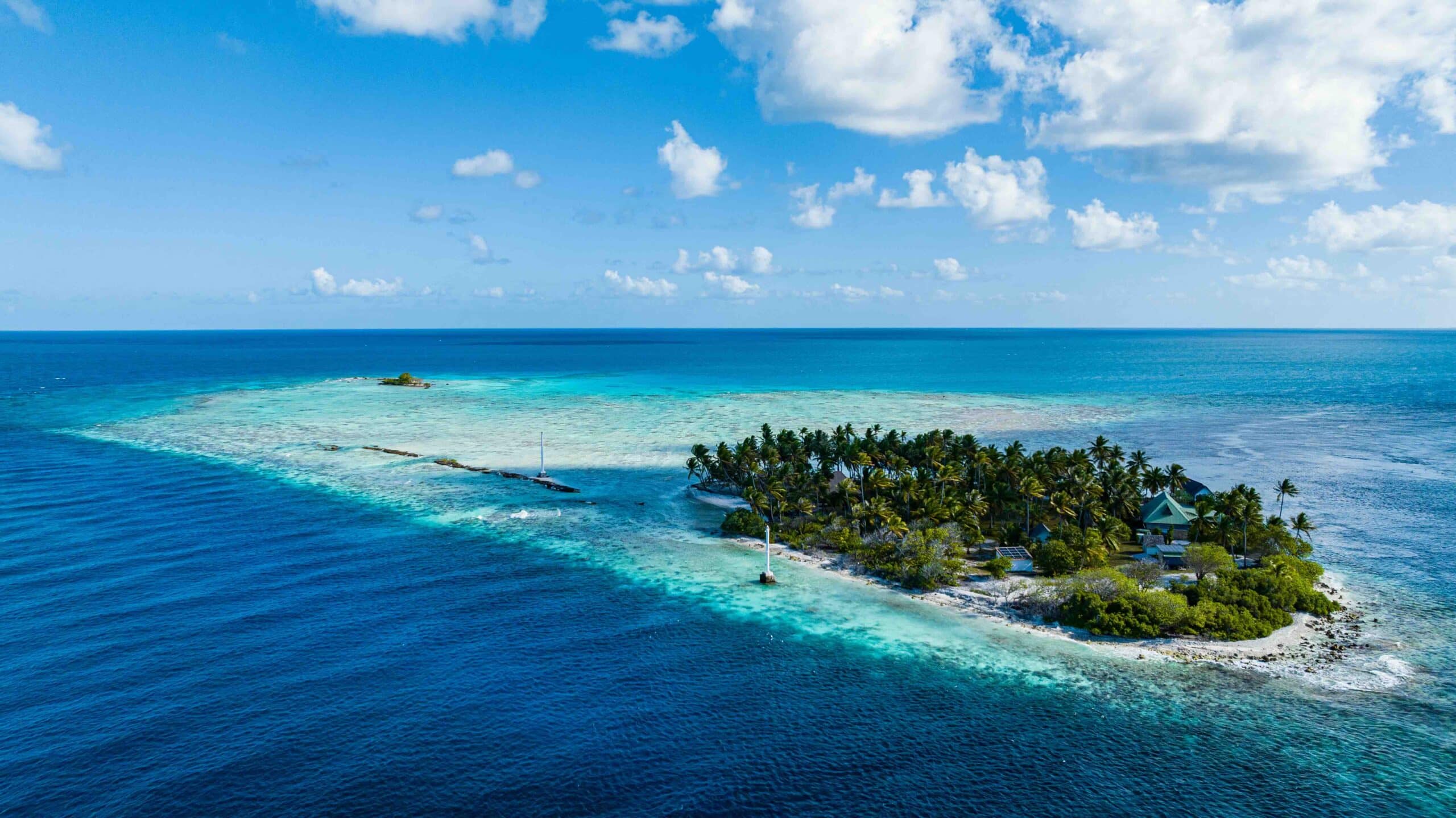 D’agréables pensions de famille ainsi qu’un superbe hôtel permettent de séjourner sur ce magnifique atoll.
