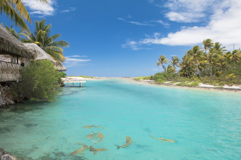 La piscine naturelle de Tikehau, renfermant différentes espèces sous-marines étonnantes telles que les raies aigles, les thons, les requins marteaux ou gris, les tortues et les dauphins, est à découvrir absolument.
